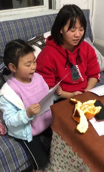 活动中,家长给孩子讲故事、与孩子一起诵读或者让孩子看图说故事,每天将亲子阅读的视频或者图片分享在班级群里。