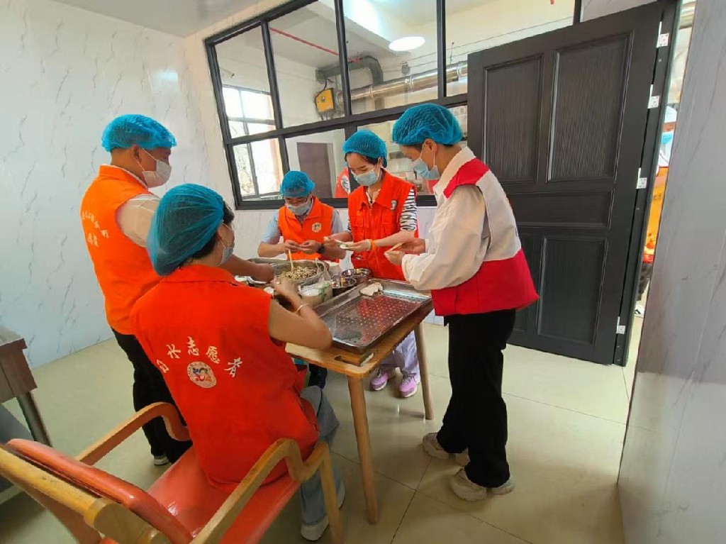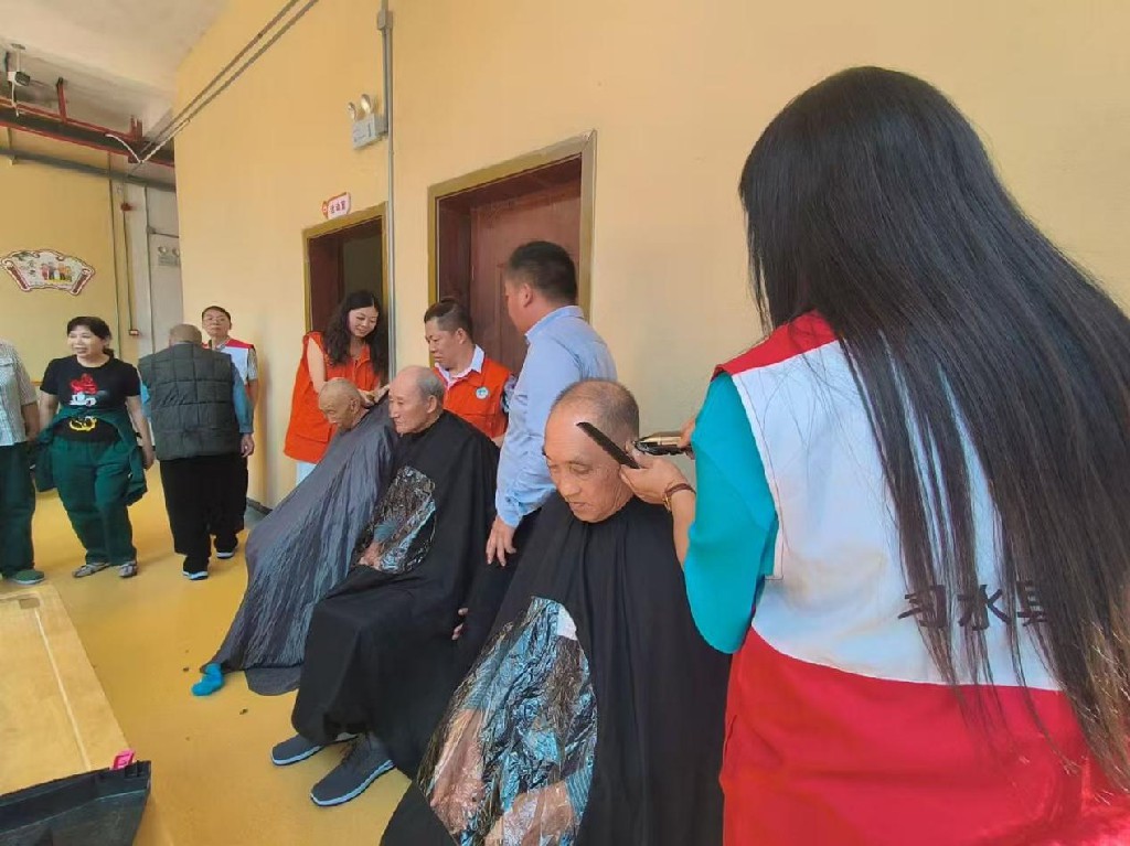 文艺表演结束后,志愿者分组行动,有的给老人理发;有的为老人修剪指甲;有的给老人包饺子,相关单位领导与志愿者代表向老人们致以节日的问候和温暖的棉衣,让老人们感受到社会的尊重与关爱。