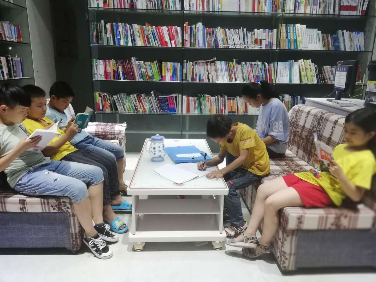 图片为学生到二里镇图书馆阅读课外书籍。
