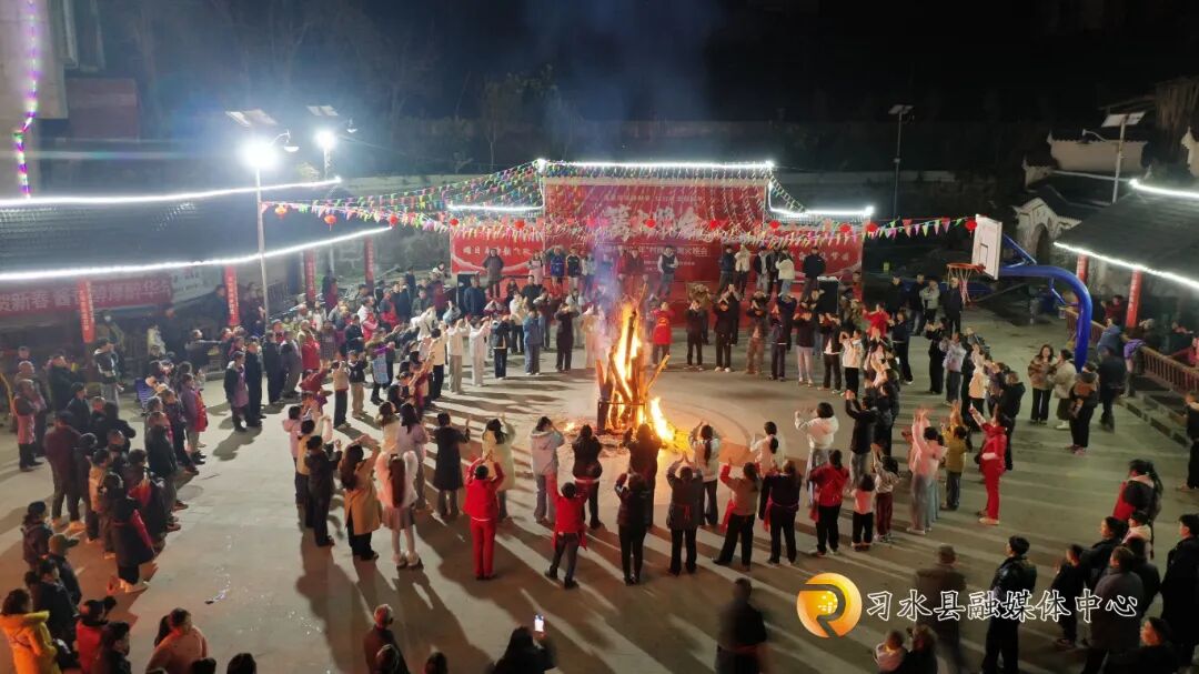 夜幕降临,篝火晚会将活动推向高潮。舞狮表演者腾挪跳跃,引得观众欢呼;村民们手拉手围绕篝火载歌载舞,笑声与火光交织,构成一幅温暖的乡村画卷。